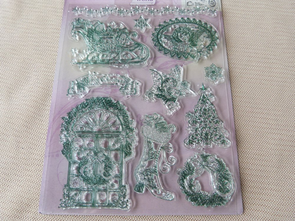 Set de Tampons clear Noel. 11 tampons à utiliser avec un bloc acrylique. Pour vos creations de Noel , carterie, scrap, home déco. Détails fins.