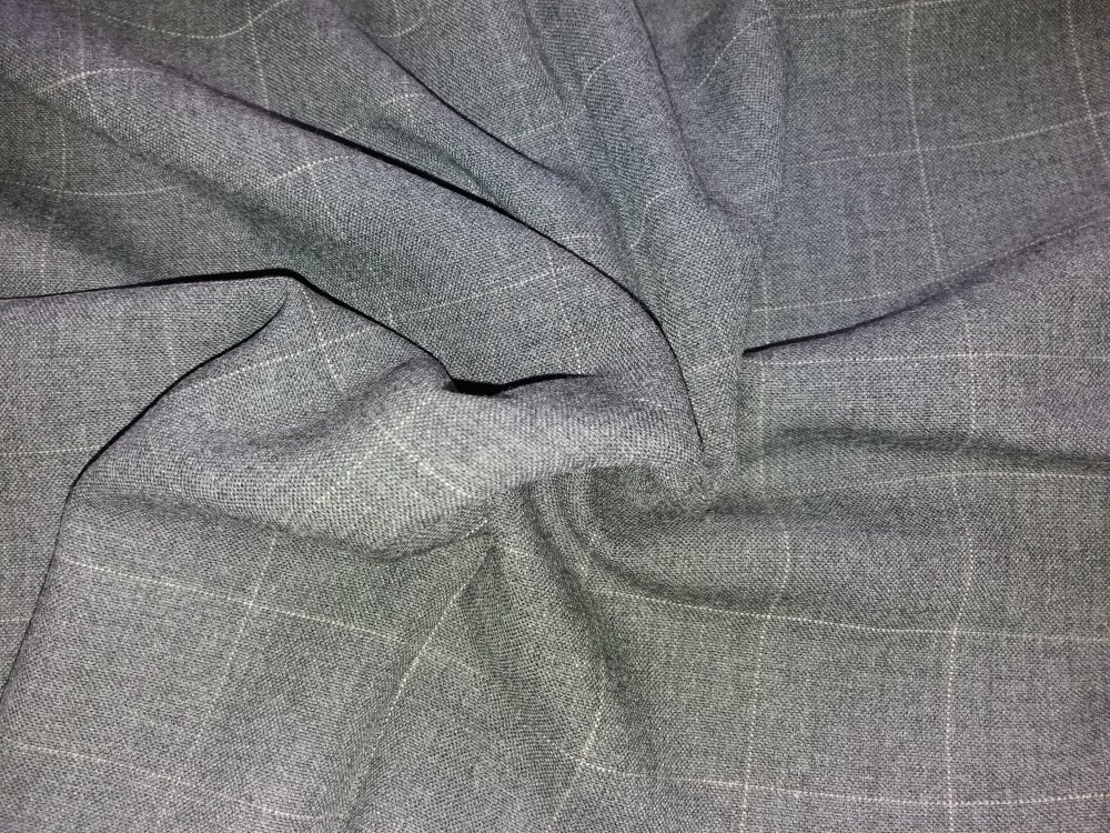 Chute d'un beau tissu gris à grands carreaux, fils plus clairs, souple et doux au toucher