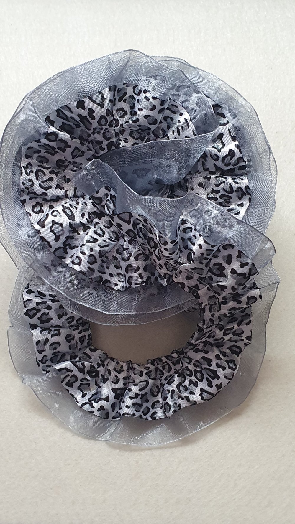 1.30m de dentelle froufrou gris noir blanc 4cm satin organza léopard