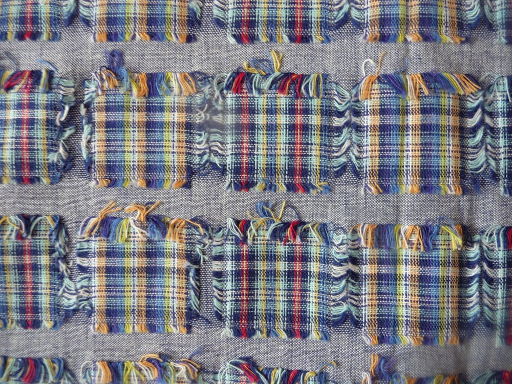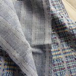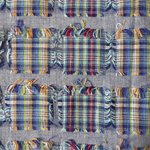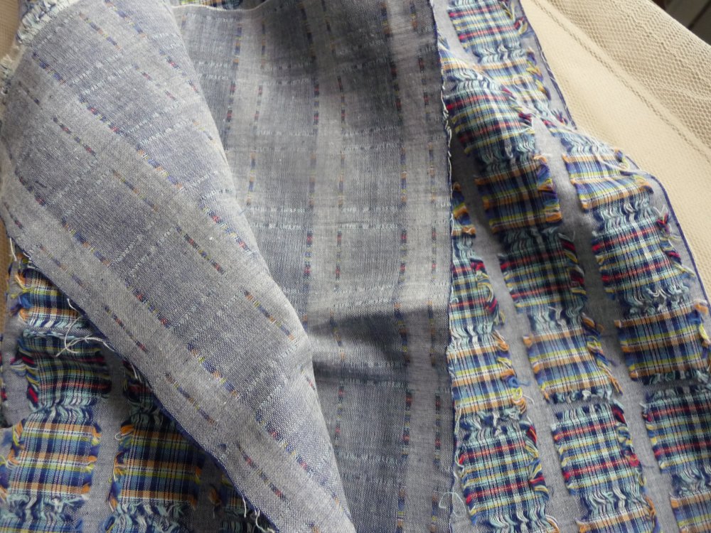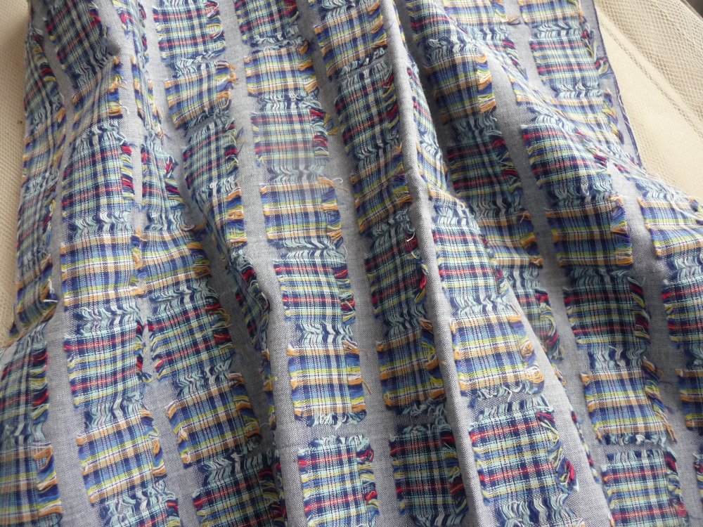 Je vous propose un très joli coupon de tissu fantaisie couleur bleue, avec motifs carrés écossais. Dos sans motifs.