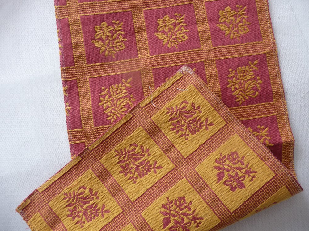 PETIT PANNEAU DE TISSU AMEUBLEMENT, COLORIS ROUGE ET JAUNE