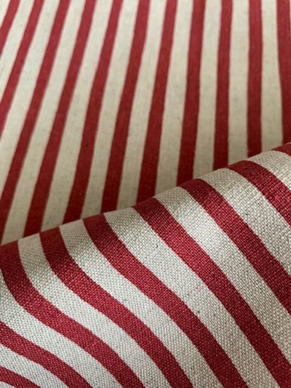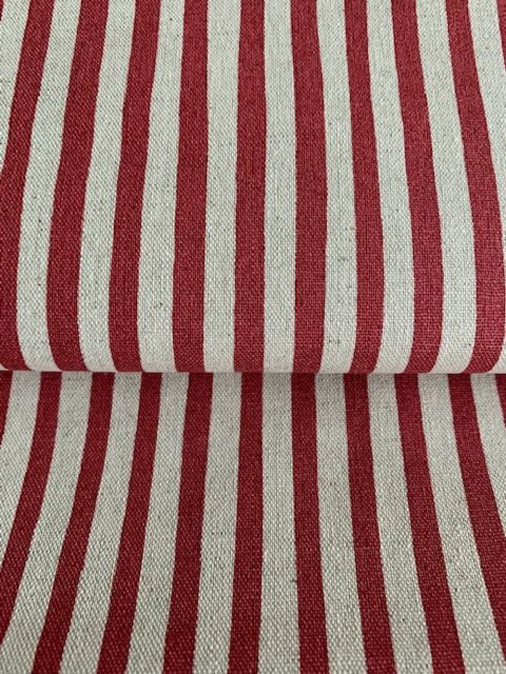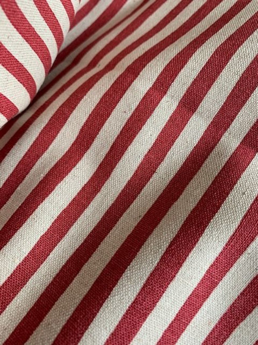 Tissu japonais, rayé, brique et écru, en lin et coton, vente pour 5 mètres /110 cm de large