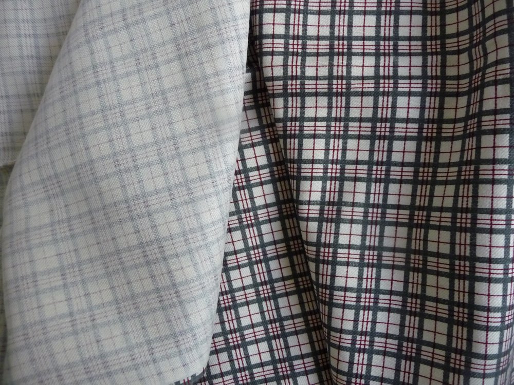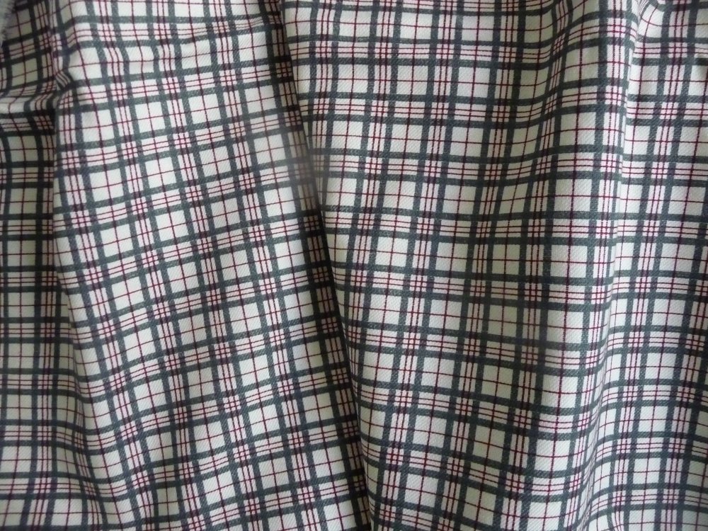 COUPON DE TISSU A CARREAUX, FOND BEIGE, RAYURES KAKI ET GRENAT