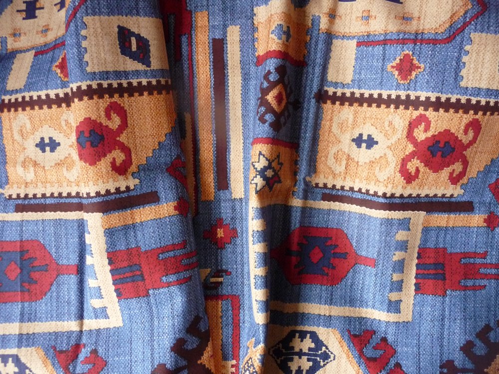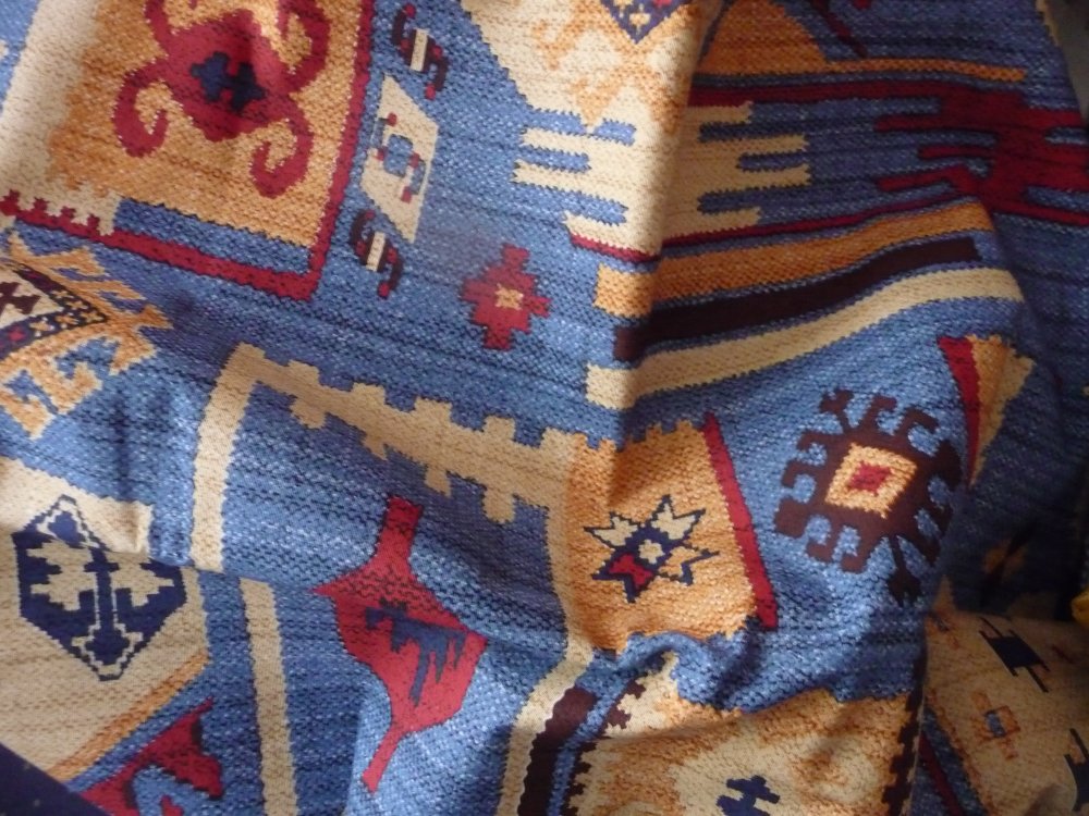 Je vous propose cette chute de tissu fantaisie, motifs géométriques inspiration aztèque, de 115 cm de longueur sur 95 cm de largeur.