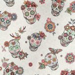 Simili cuir couleur beige avec des têtes de mort et des fleurs dessus.
