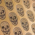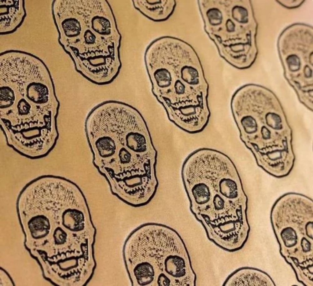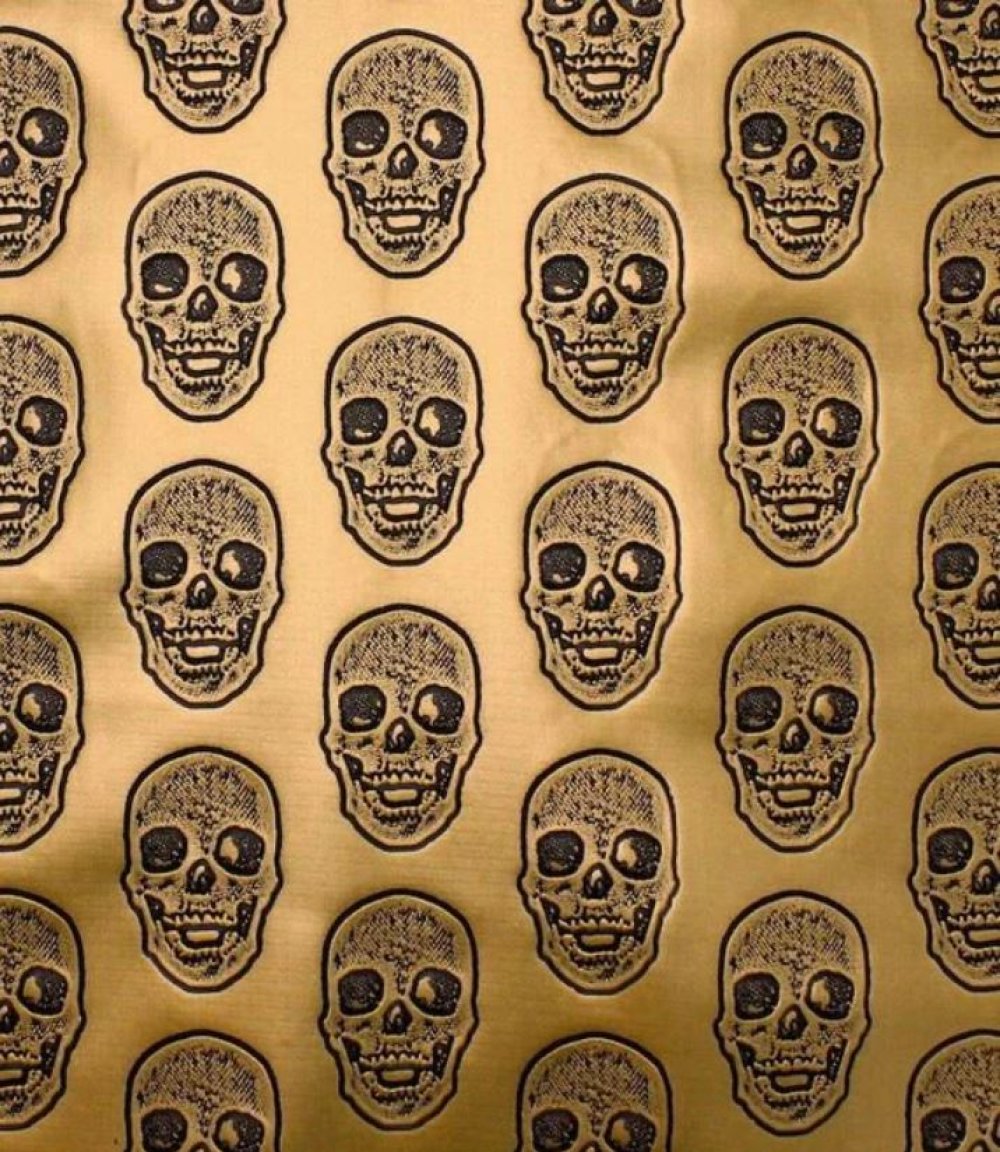 Simili cuir avec des têtes de mort doré et noir.