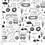 Tissu 100% coton et lavable bien sur pour enlever le crayon sur le thème des véhicules de chantier