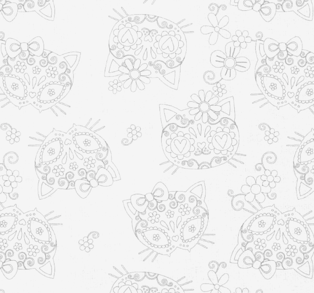Tissu 100% coton blanc à colorier imprimé têtes de chats