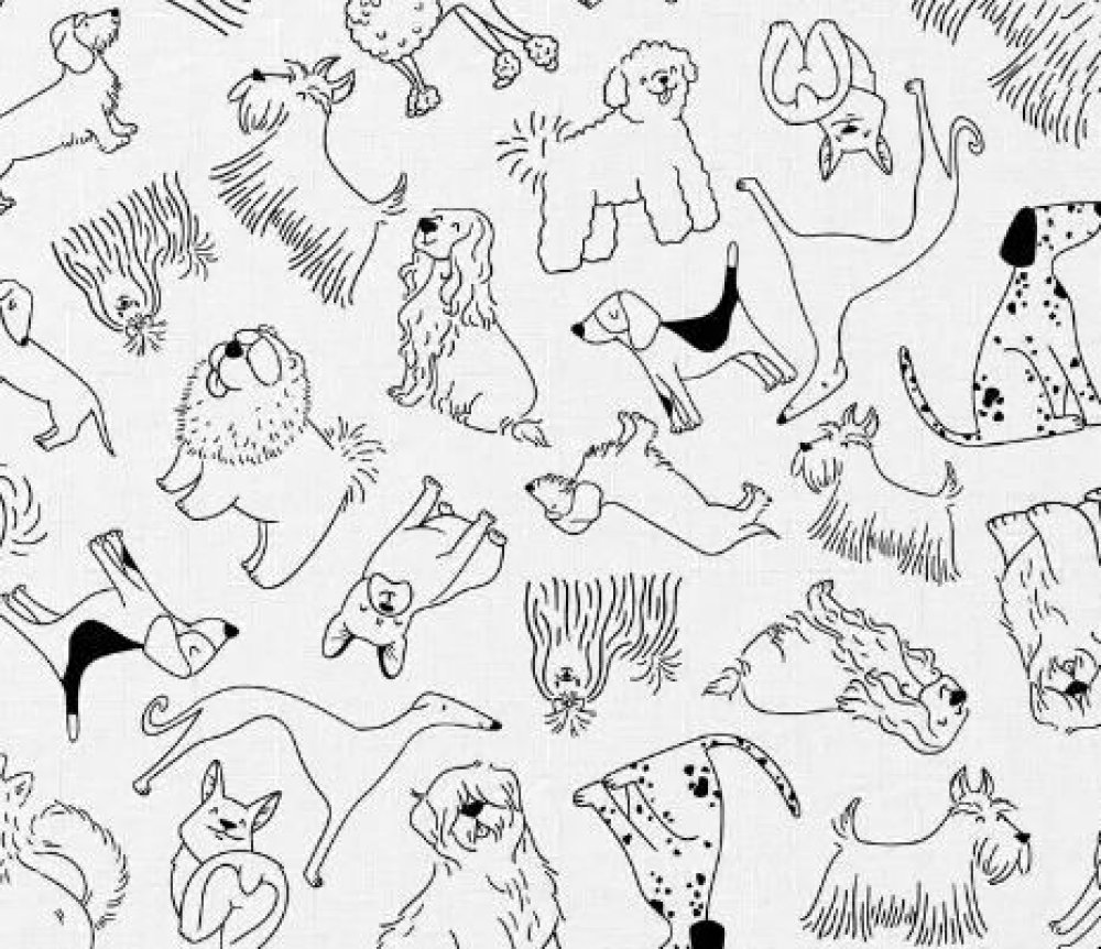 Tissu 100% coton blanc à colorier sur le thème des chiens.