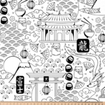 Tissu 100% coton blanc à colorier imprimé sur le thème de la Chine