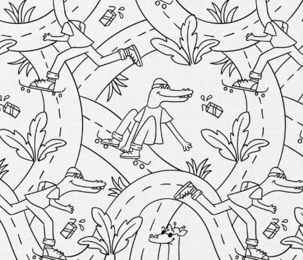 Coupon tissu 100% coton blanc à colorier avec un crocodile qui fait du skate , le tissu est lavable bien sur pour enlever le crayon