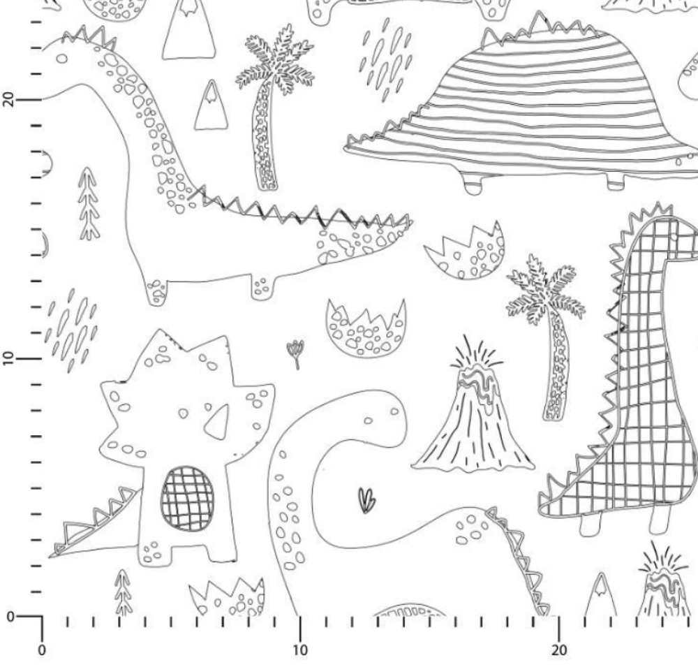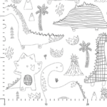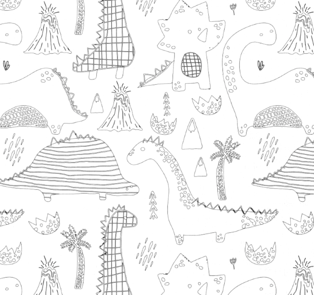 Tissu 100% coton blanc à colorier imprimé dinosaures le tissu est lavable bien sur pour enlever le crayon