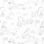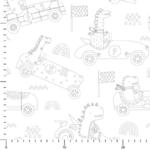 Tissu 100% coton blanc à colorier sur le thème des dinosaures en voitures le tissu est lavable bien sur pour enlever le crayon