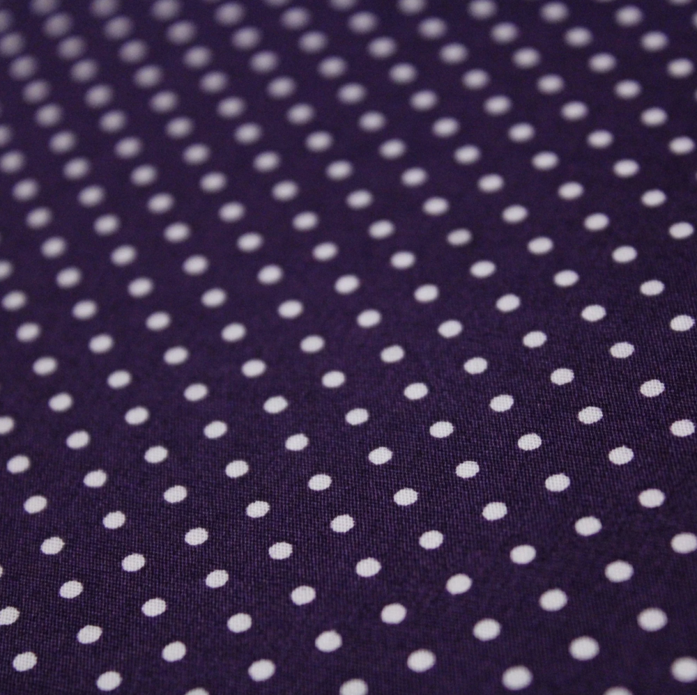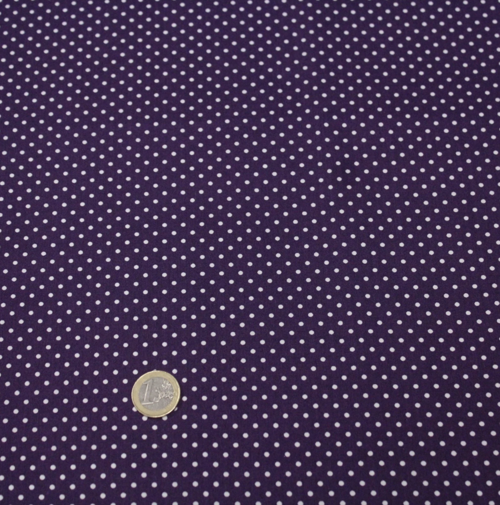 Tissu 100% coton violet aubergine avec des petits pois blancs de 2mm