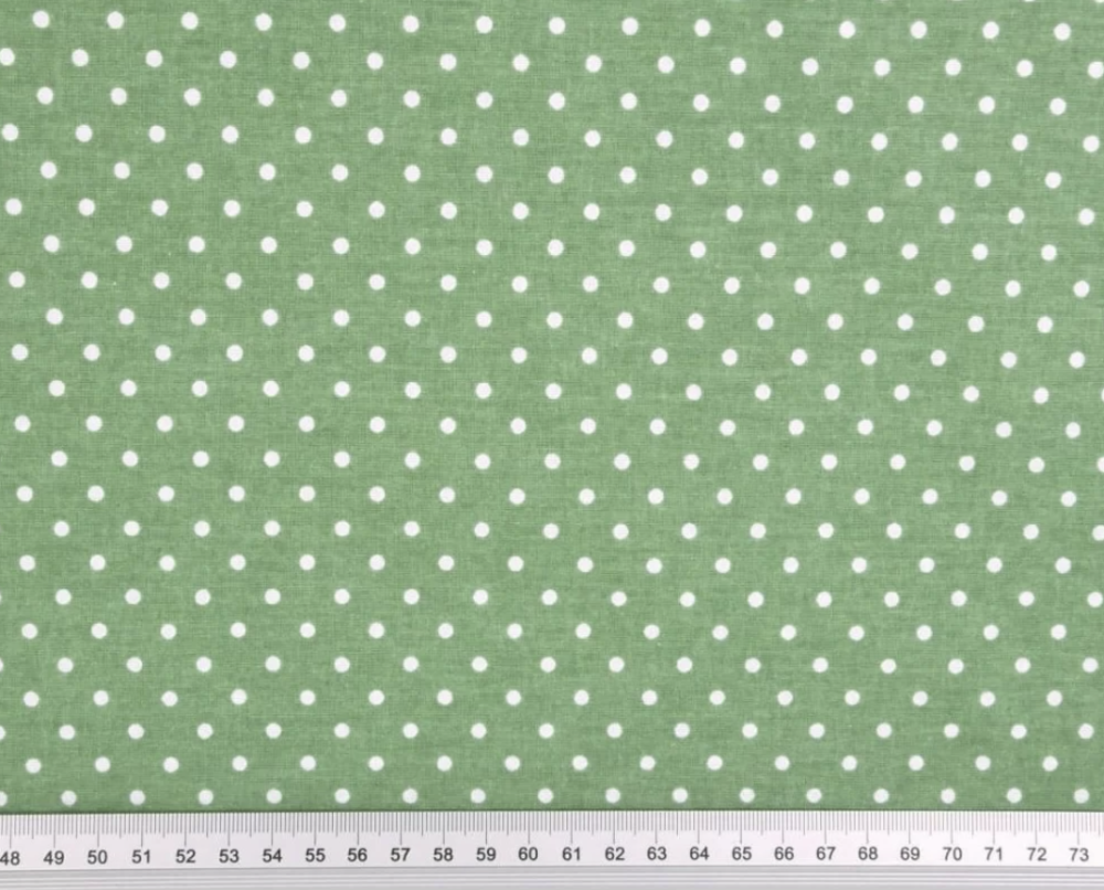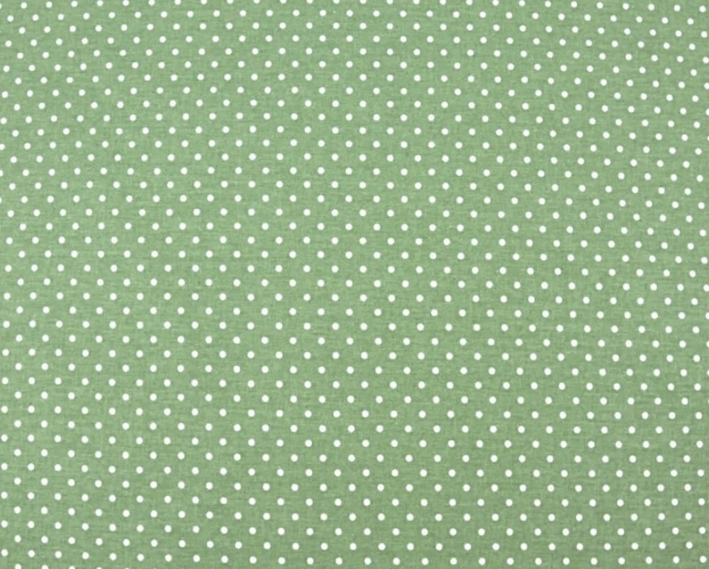 Tissu 100% coton vert sauge imprimé avec des petits pois blancs de 4mm de diamètre