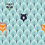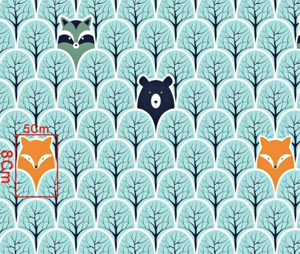 Tissu 100% coton enfant turquoise avec des petits animaux dans la forêt