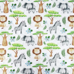 Tissu 100% coton blanc avec des animaux dans la savane