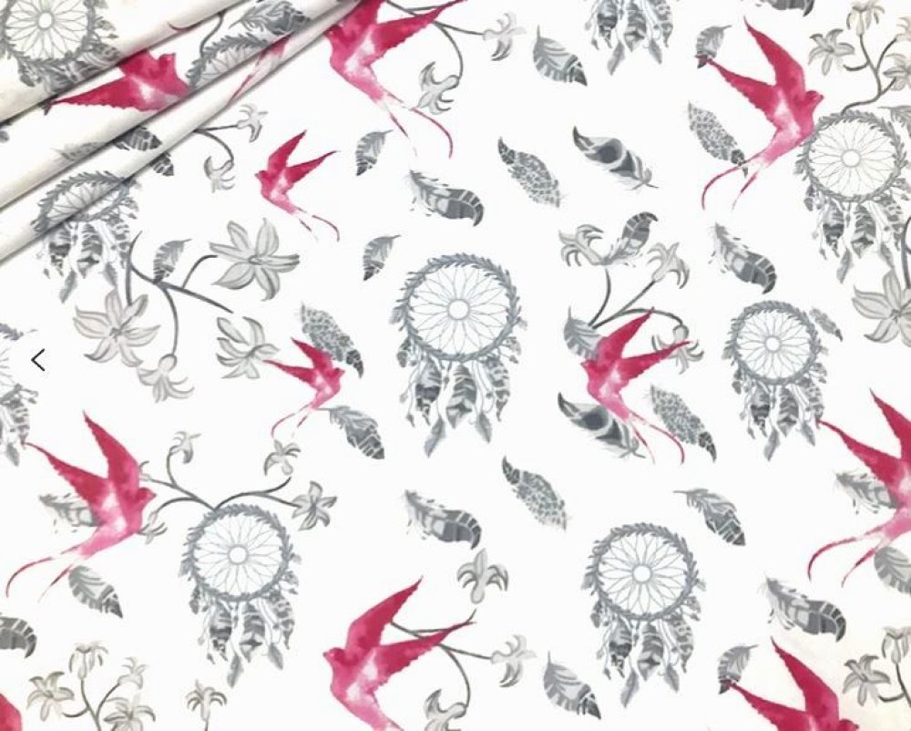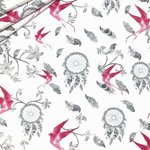 Tissu 100% coton blanc imprimé attrapes rêves gris et roses pour un effet déco très tendance