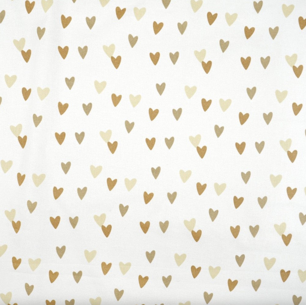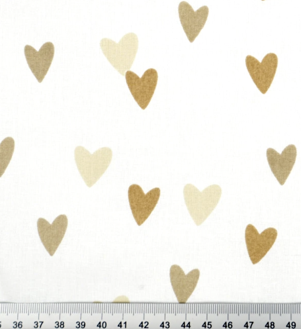 Tissu 100% coton blanc avec des cœurs camel et beige