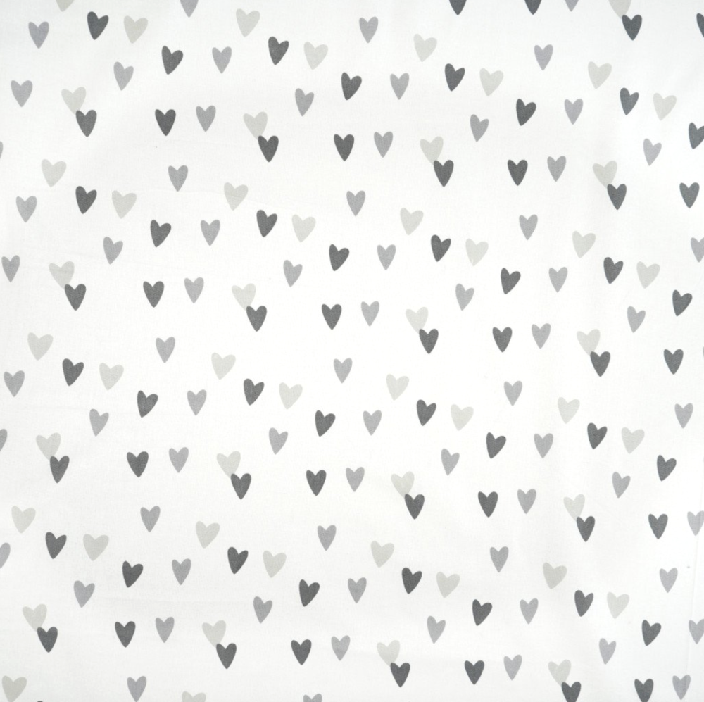 Tissu 100% coton blanc avec des coeurs gris de 2cm de haut