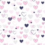 Tissu 100% coton blanc avec des cœurs roses et marine