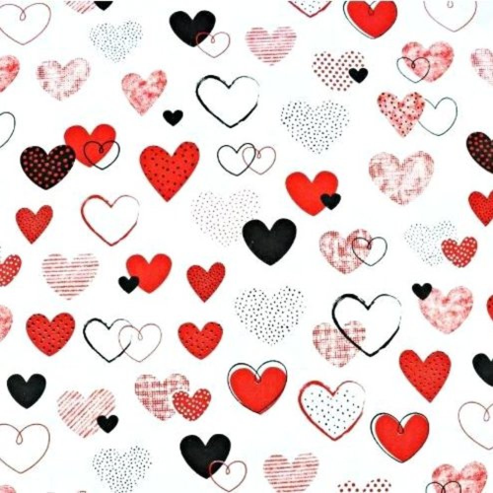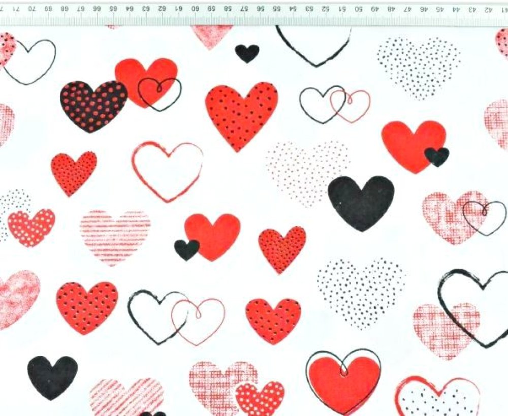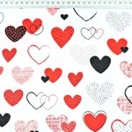 Tissu 100% coton blanc avec des cœurs rouge et noirs
