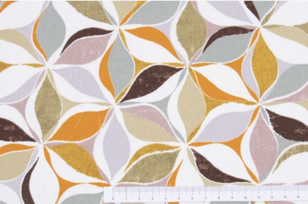 Tissu 100% coton floral esprit carreaux de ciment dans les tons naturels