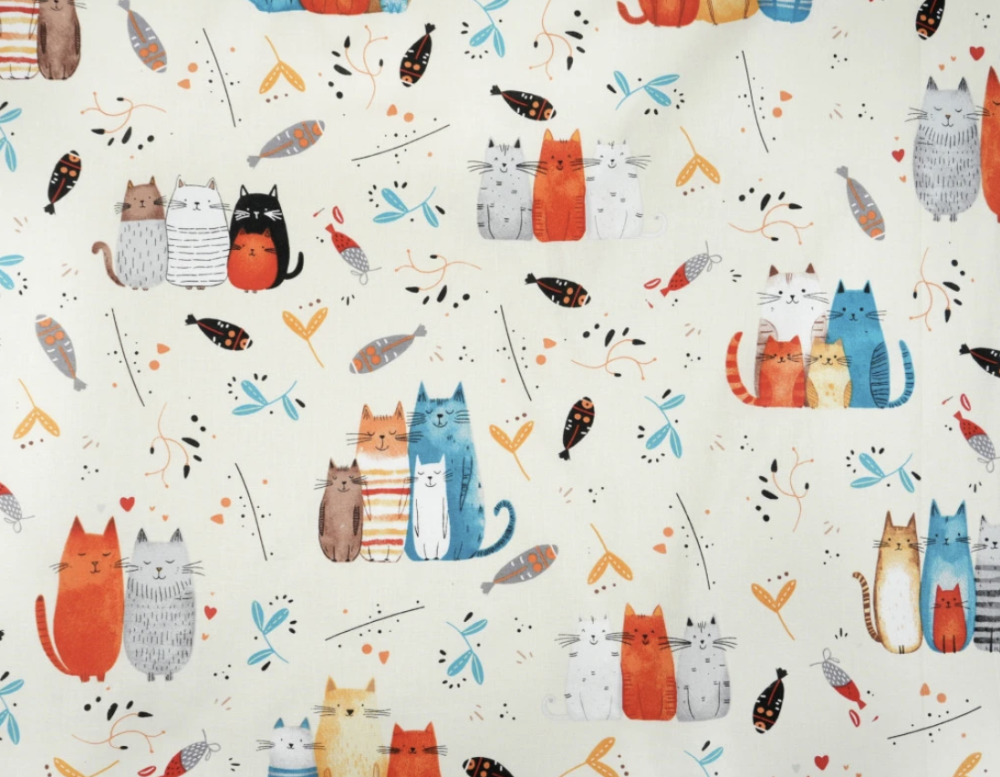 Tissu coton chats multicolores 50x80 cm