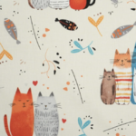 Tissu 100% coton fond beige imprimé avec des chats multicolores