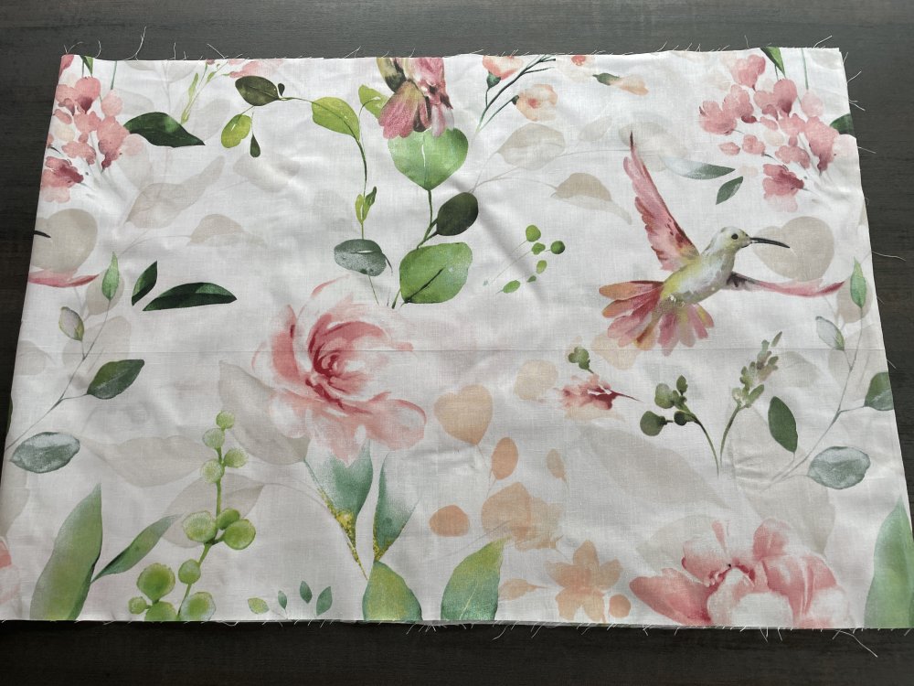 Tissu 100% coton blanc avec des fleurs et un colibris dessus