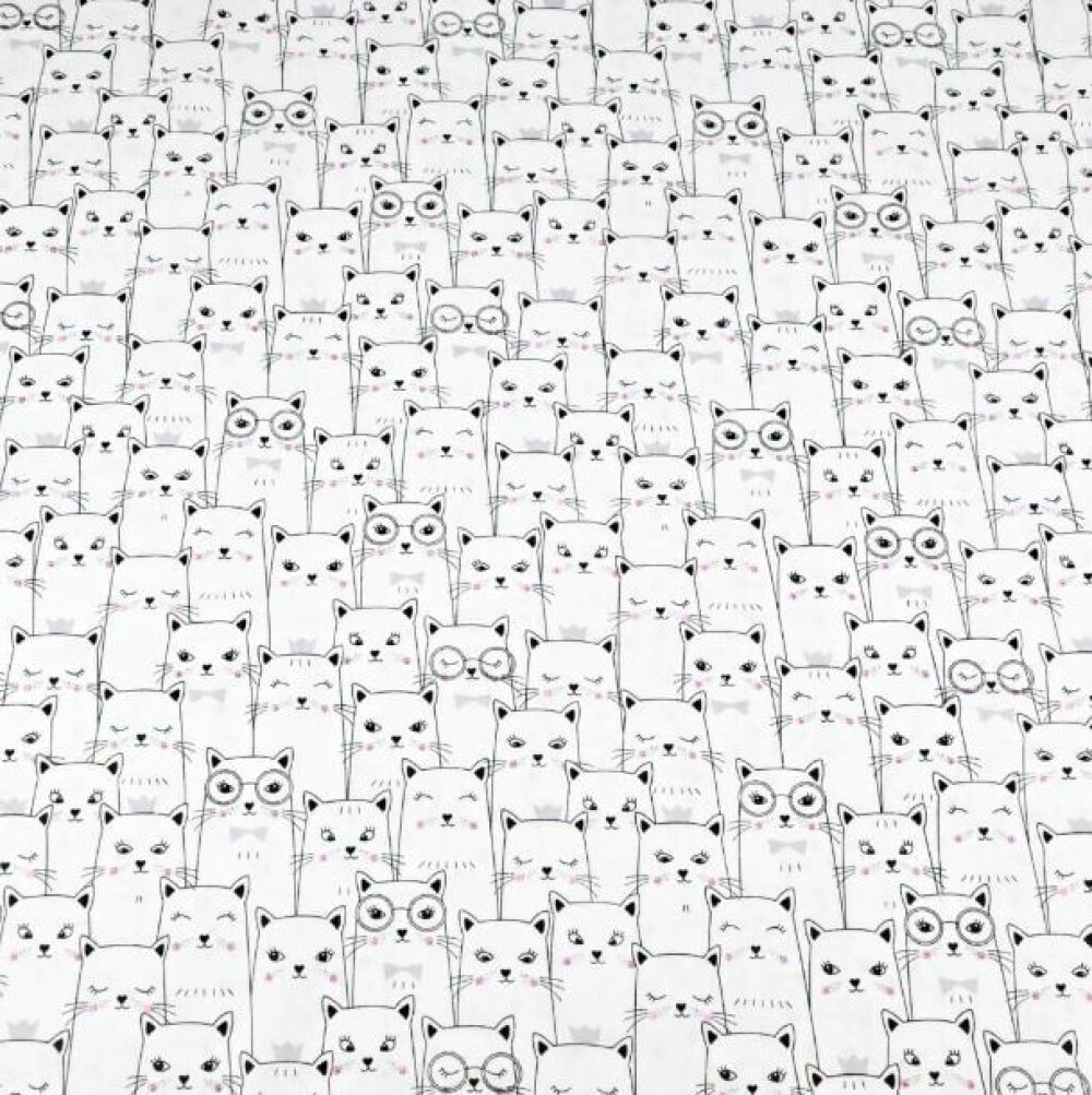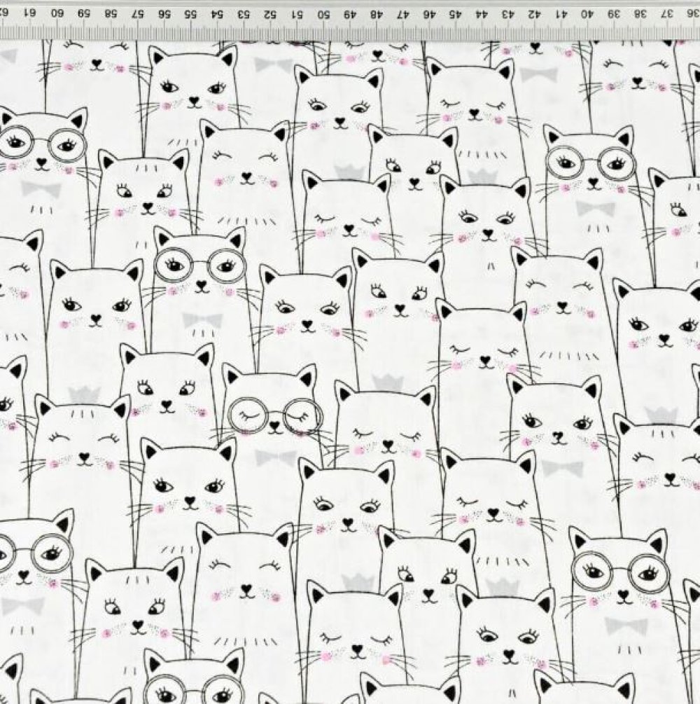 Tissu 100% coton noir et blanc imprimé avec des chats