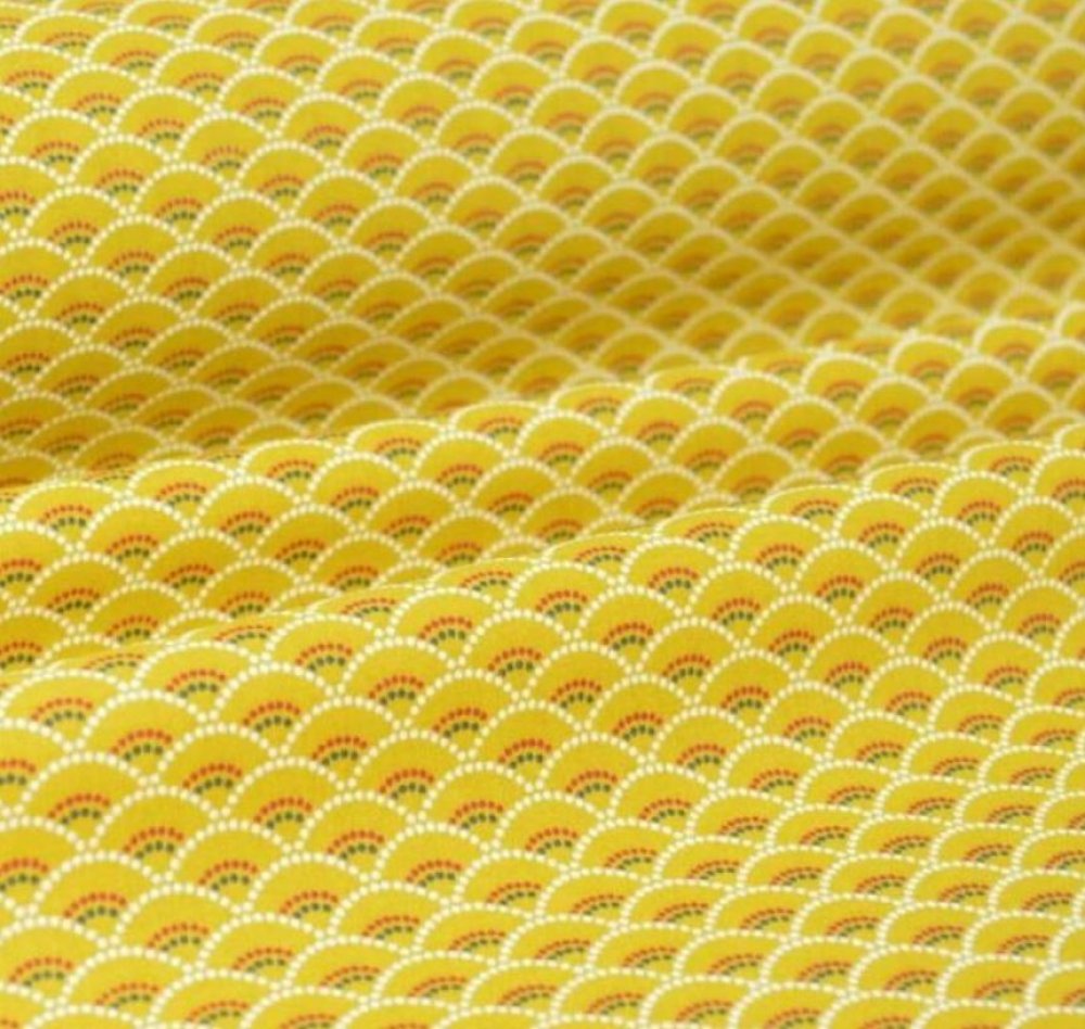 Tissu 100% coton jaune avec des éventails pour un style japonais