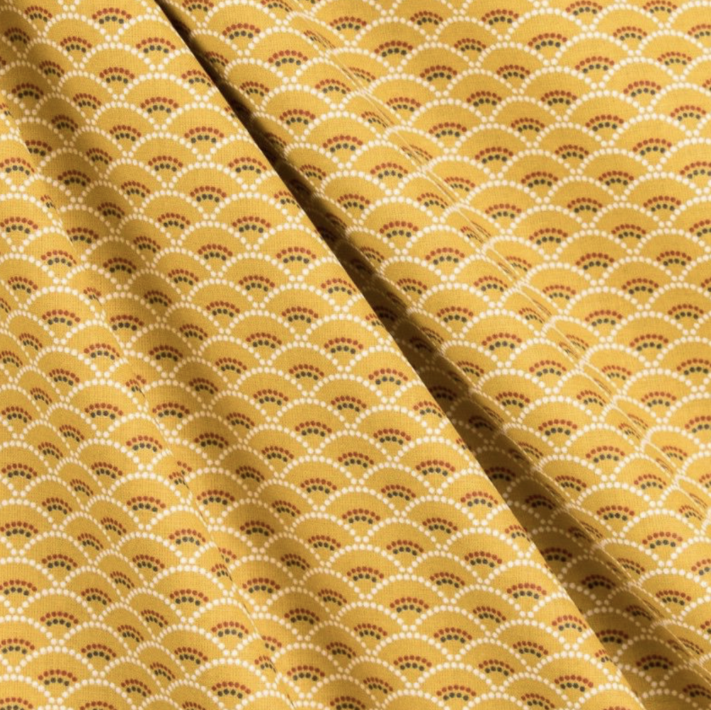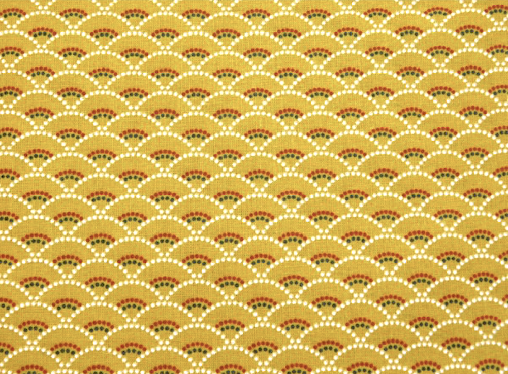 Tissu 100% coton jaune avec des éventails pour un style japonais