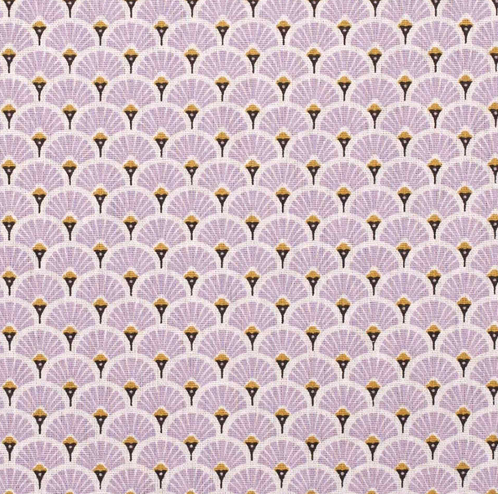 Tissu 100% coton avec des imprimés en forme d'éventails lavande