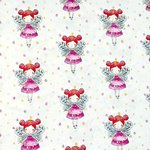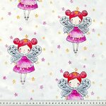 Tissu 100% coton blanc avec des petites fées roses dessus. La fée fait 15cm de haut et 10.5cm de large
