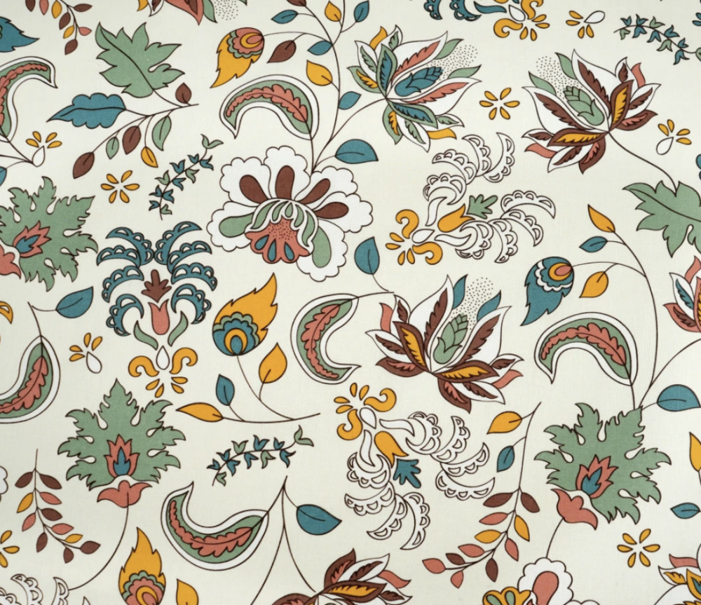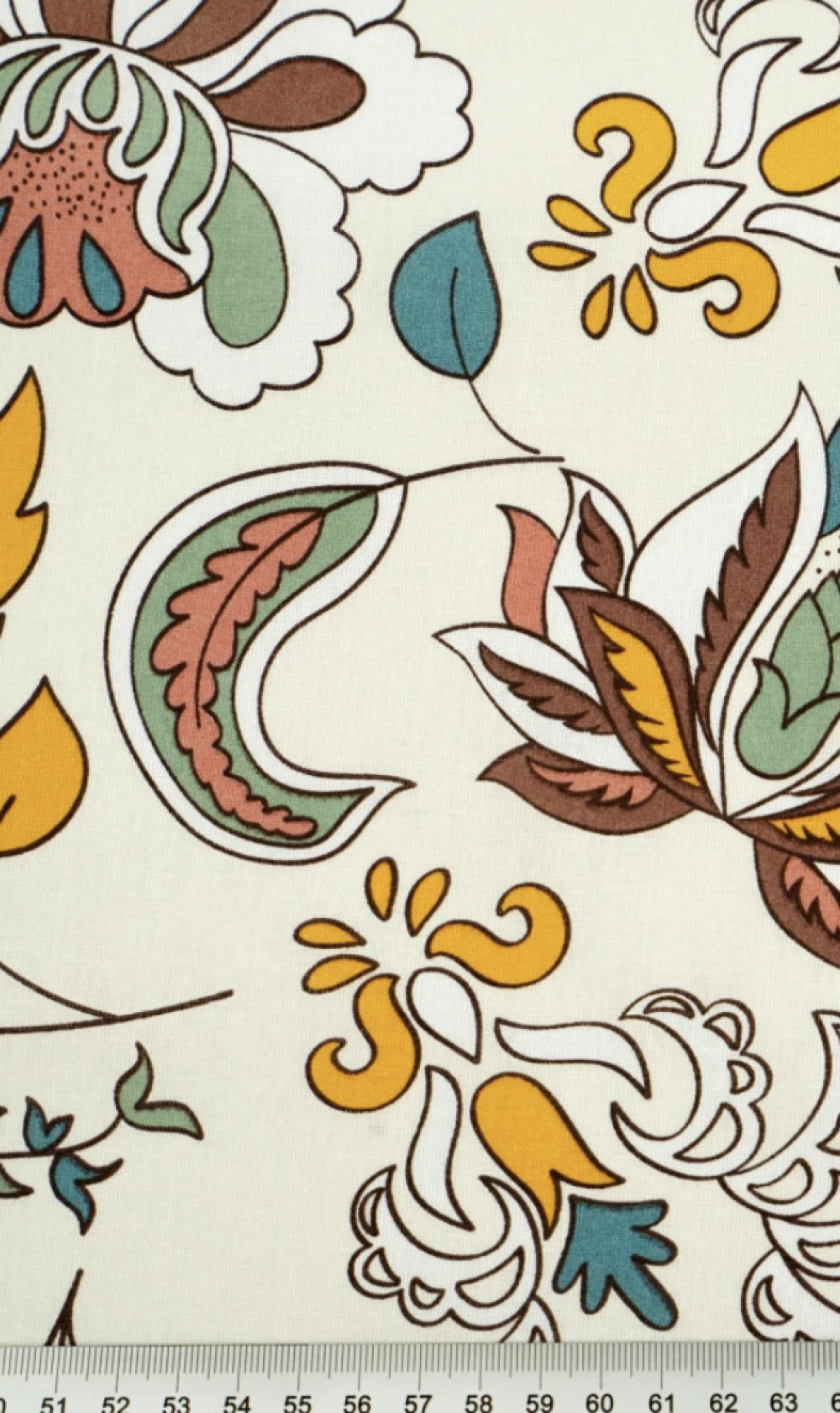 Tissu 100% coton beige avec des fleurs multicolores pour un esprit folk