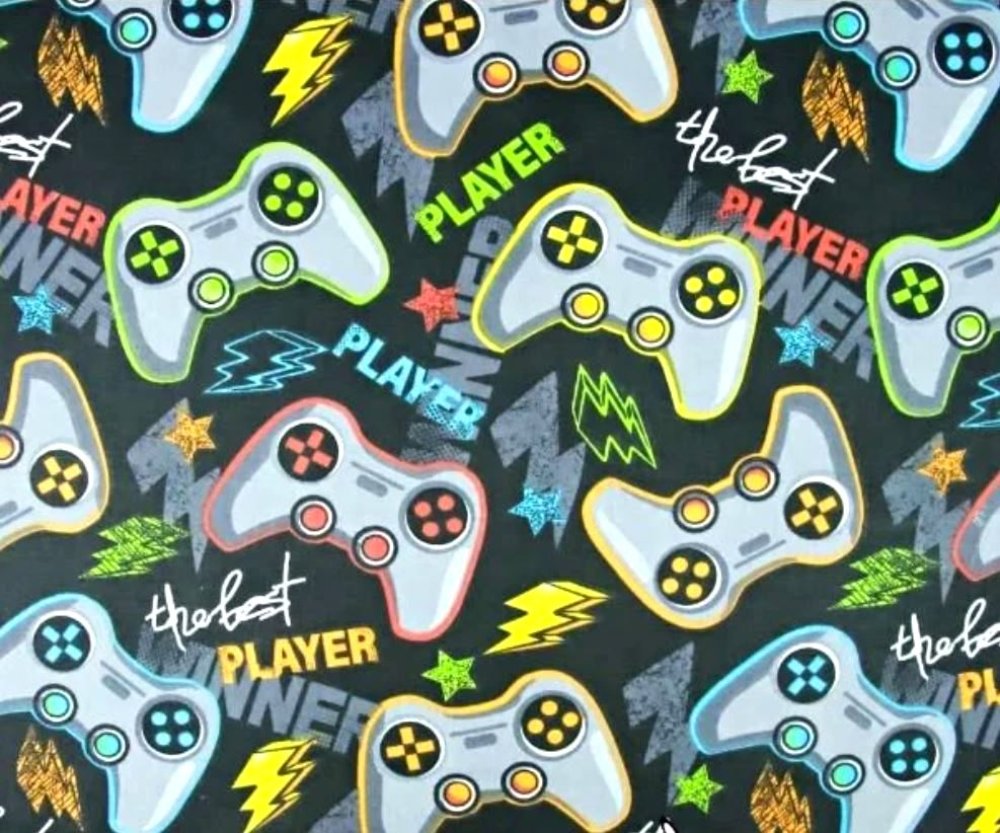Tissu 100% coton enfant noir imprimé de manettes de consoles de jeux