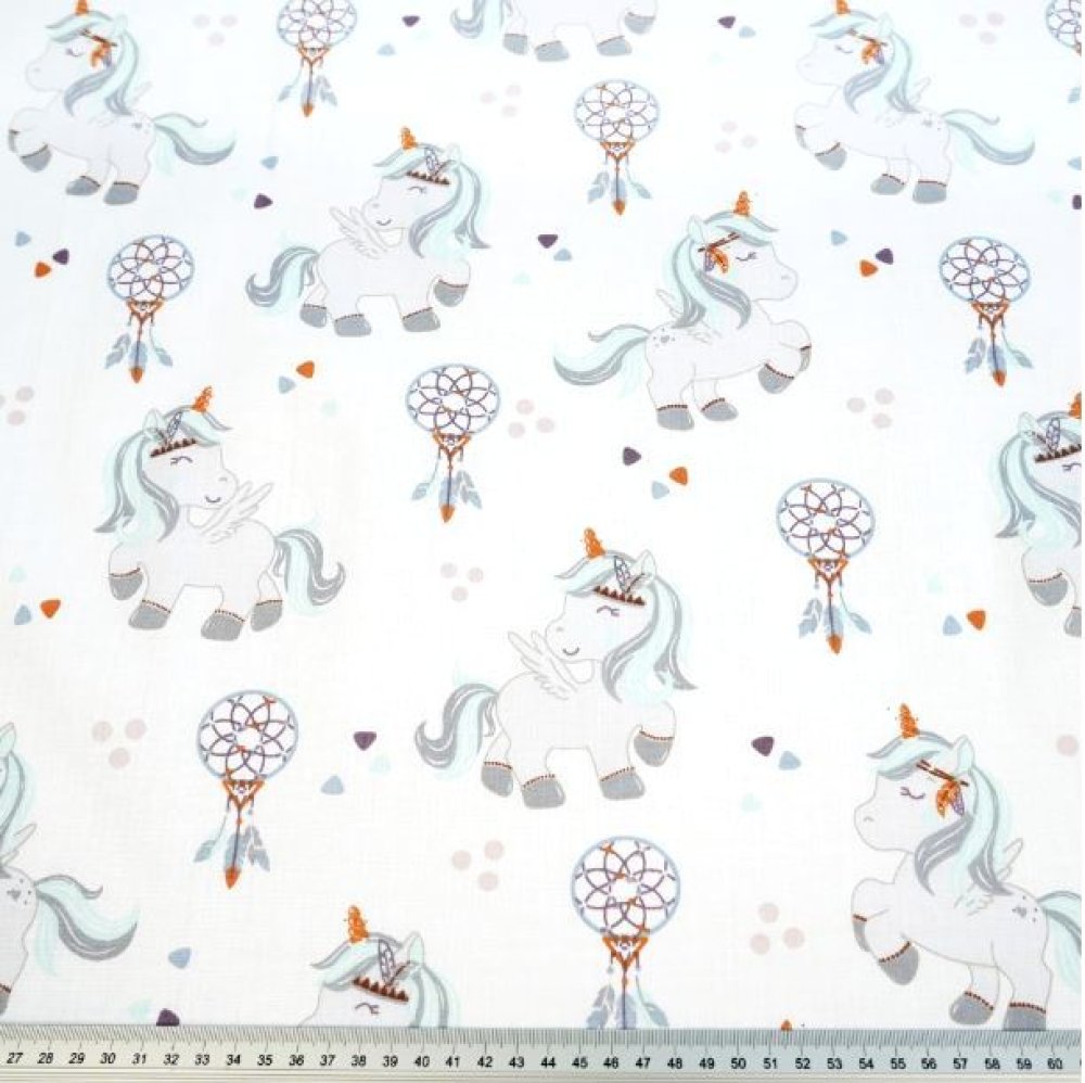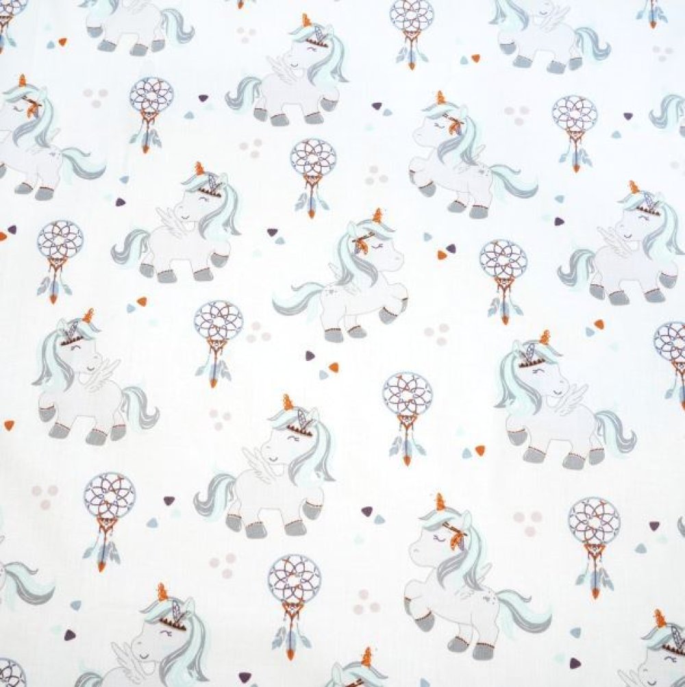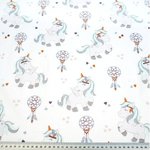 Tissu 100% coton blanc avec des licornes et des attrapes rêves