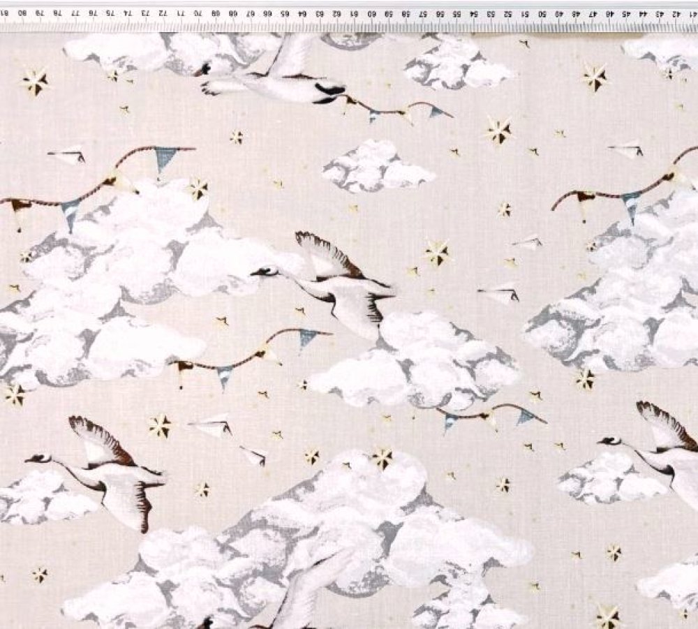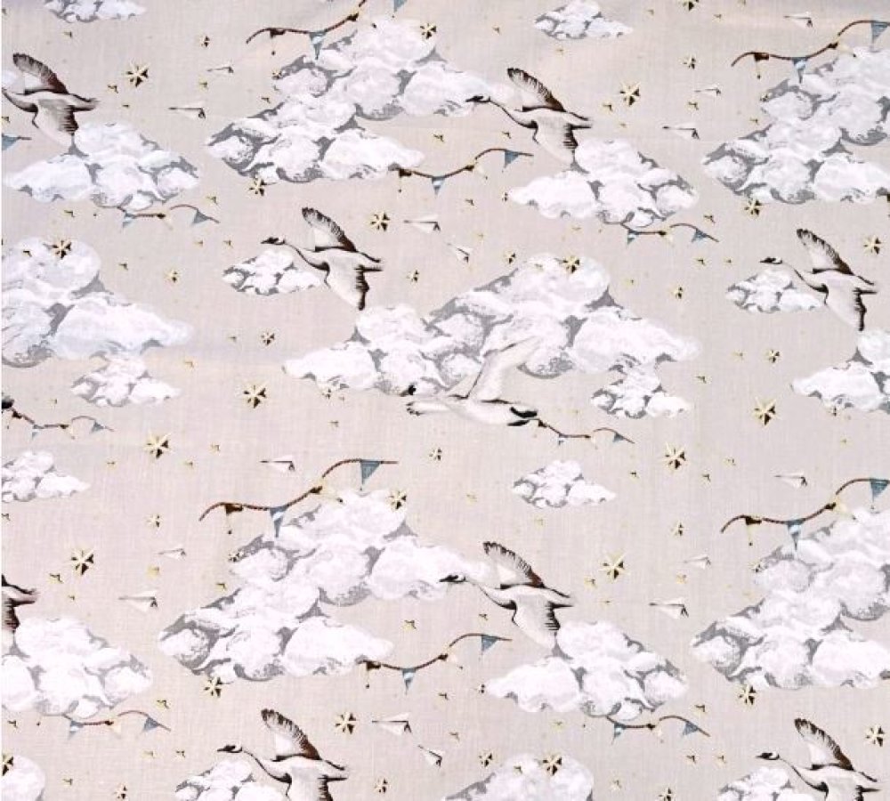 Tissu 100% coton beige imprimé d'oies dans les nuages