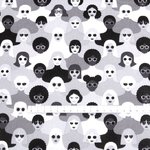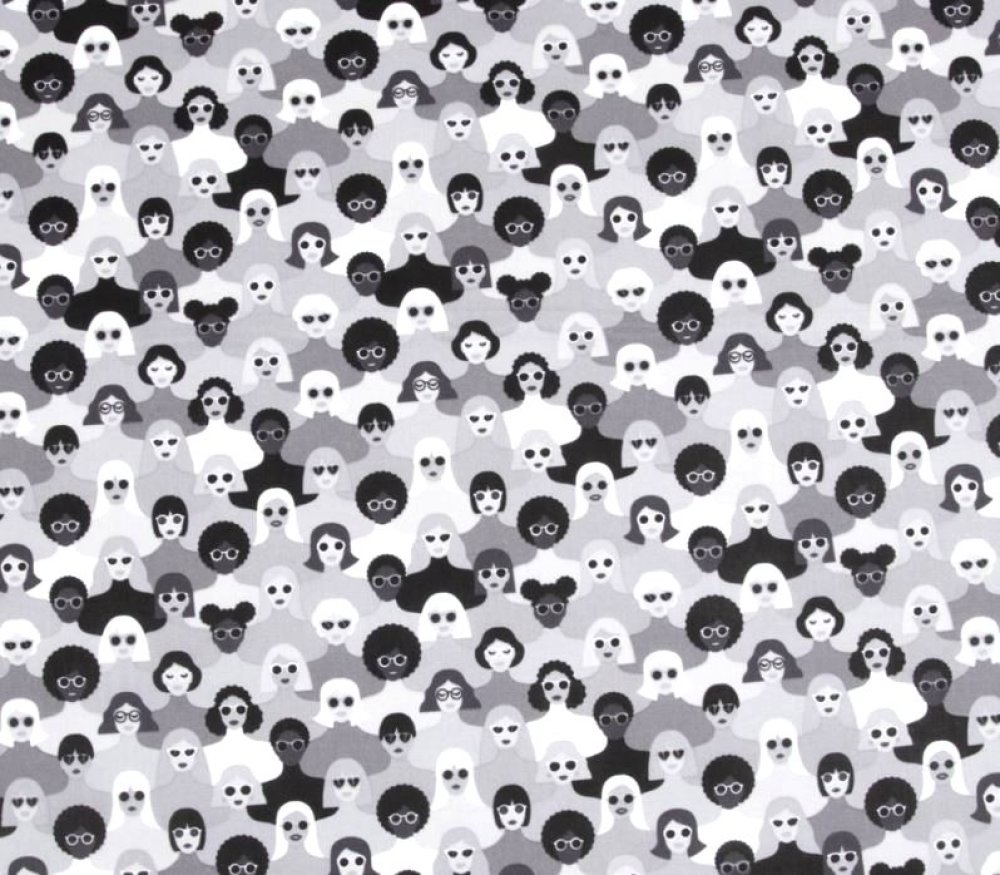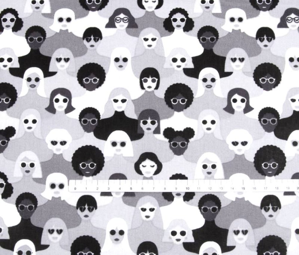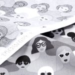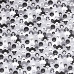 Tissu 100% coton gris, noir et blanc imprimé de personnages