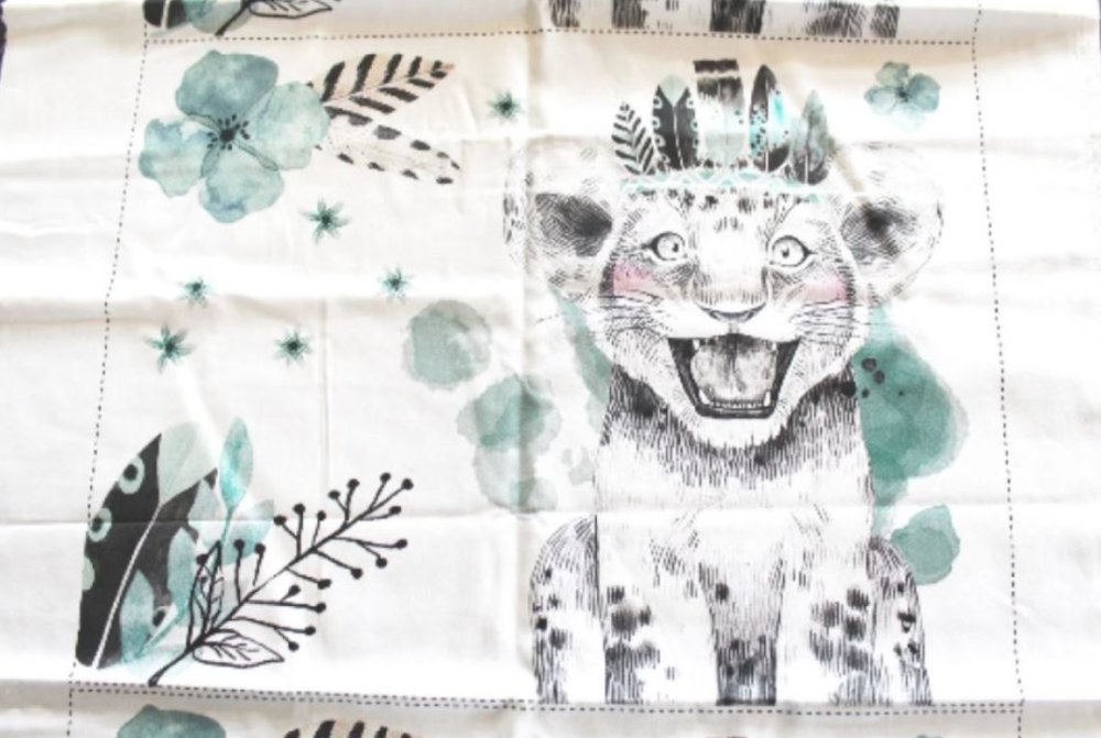 Tissu coton petit lion vert 41x31cm
