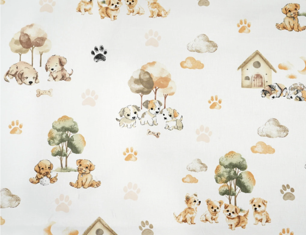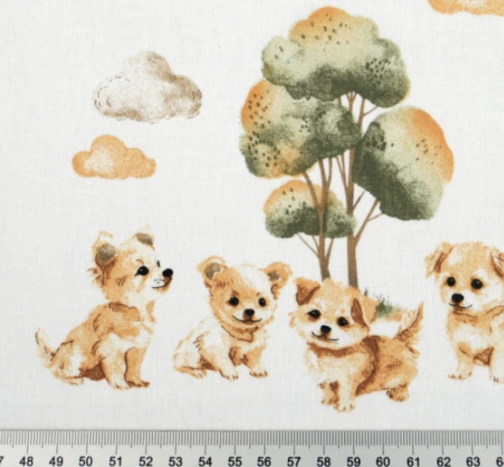 Tissu coton chiens blanc et beige 50x80cm