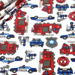 Tissu 100% coton blanc sur le thème des policiers et des pompiers