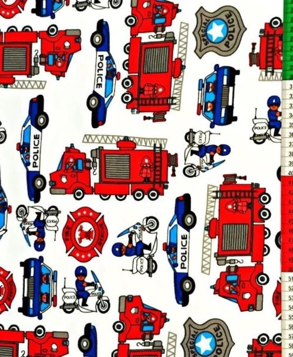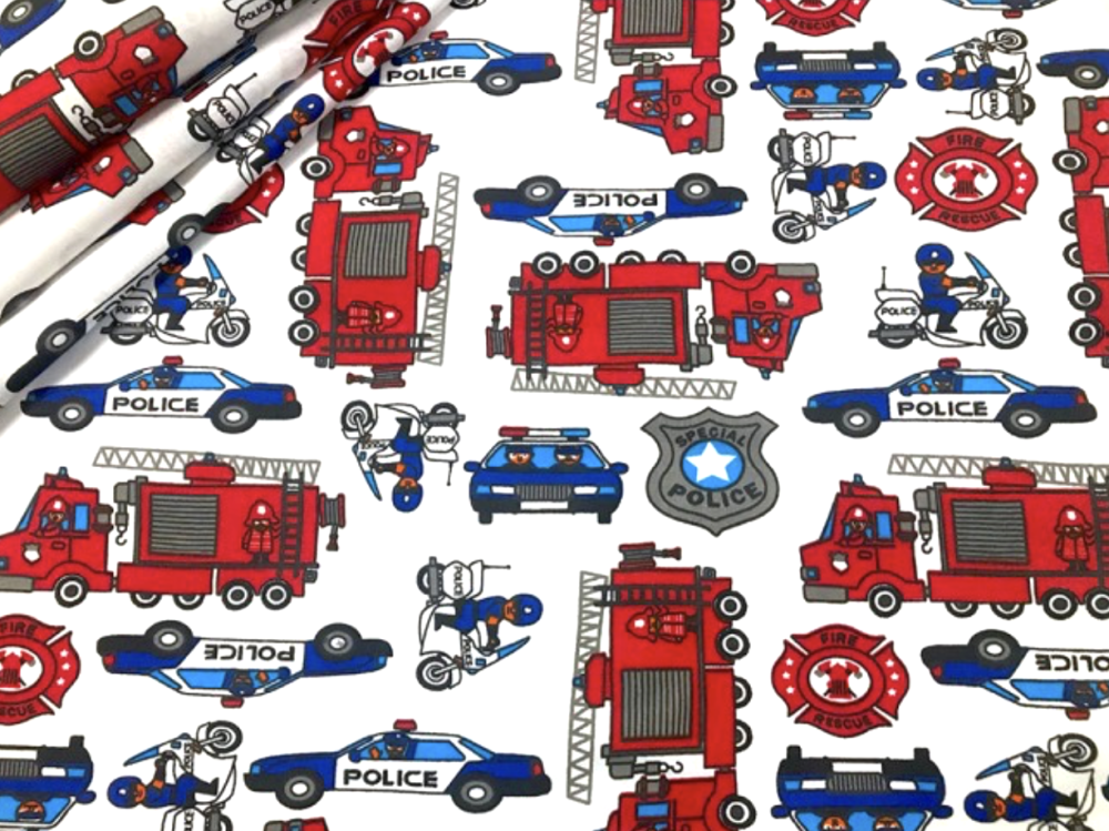 Tissu 100% coton blanc sur le thème des policiers et des pompiers