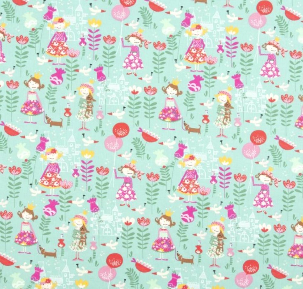Tissu 100% coton vert avec des princesses dessus