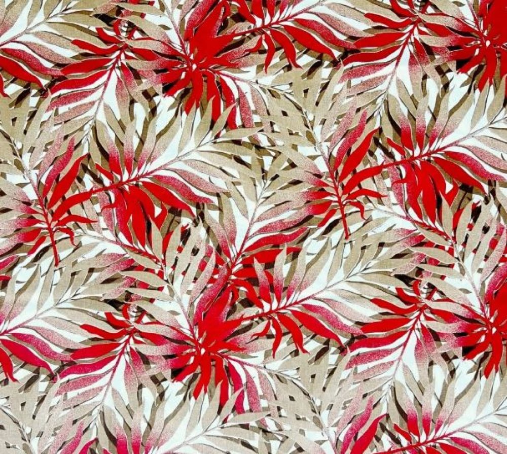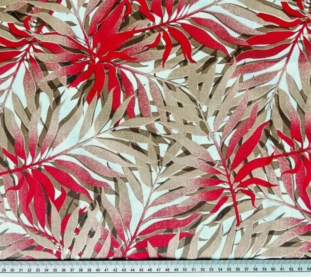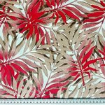 Coupon de tissu 100% coton avec des imprimés tropicaux rouge et beige