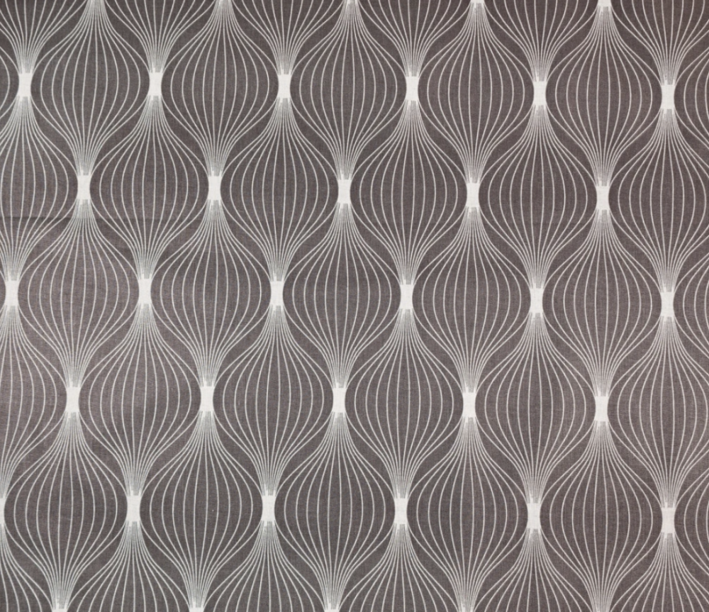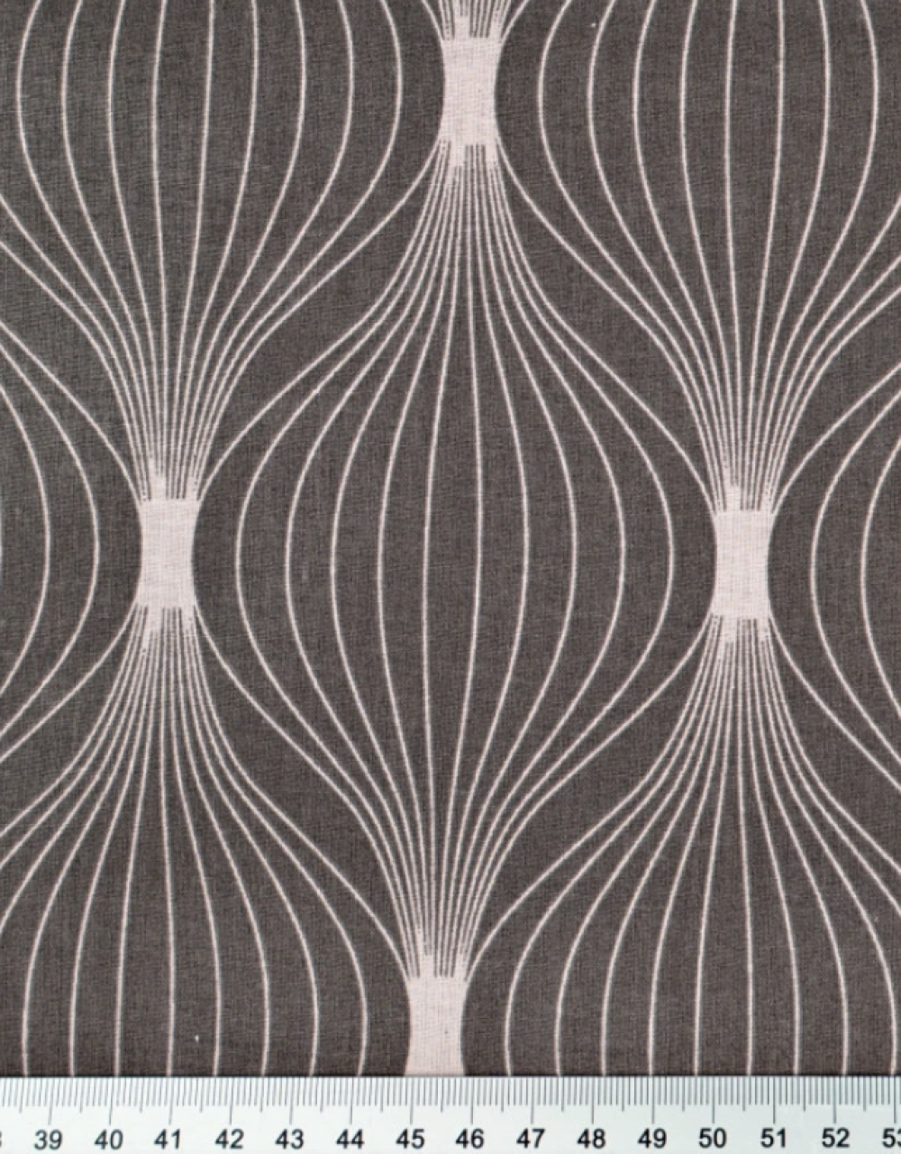 Tissu 100% coton marrons avec des motifs graphiques en forme de toupies de couleur beige