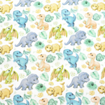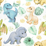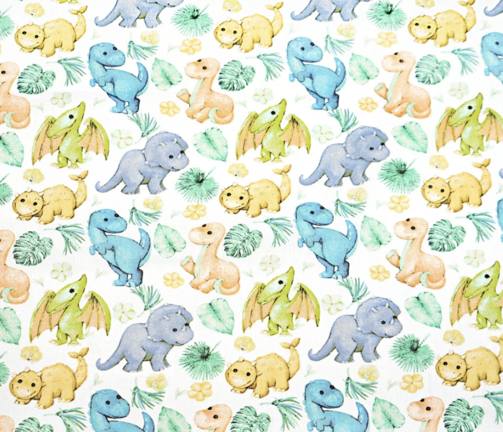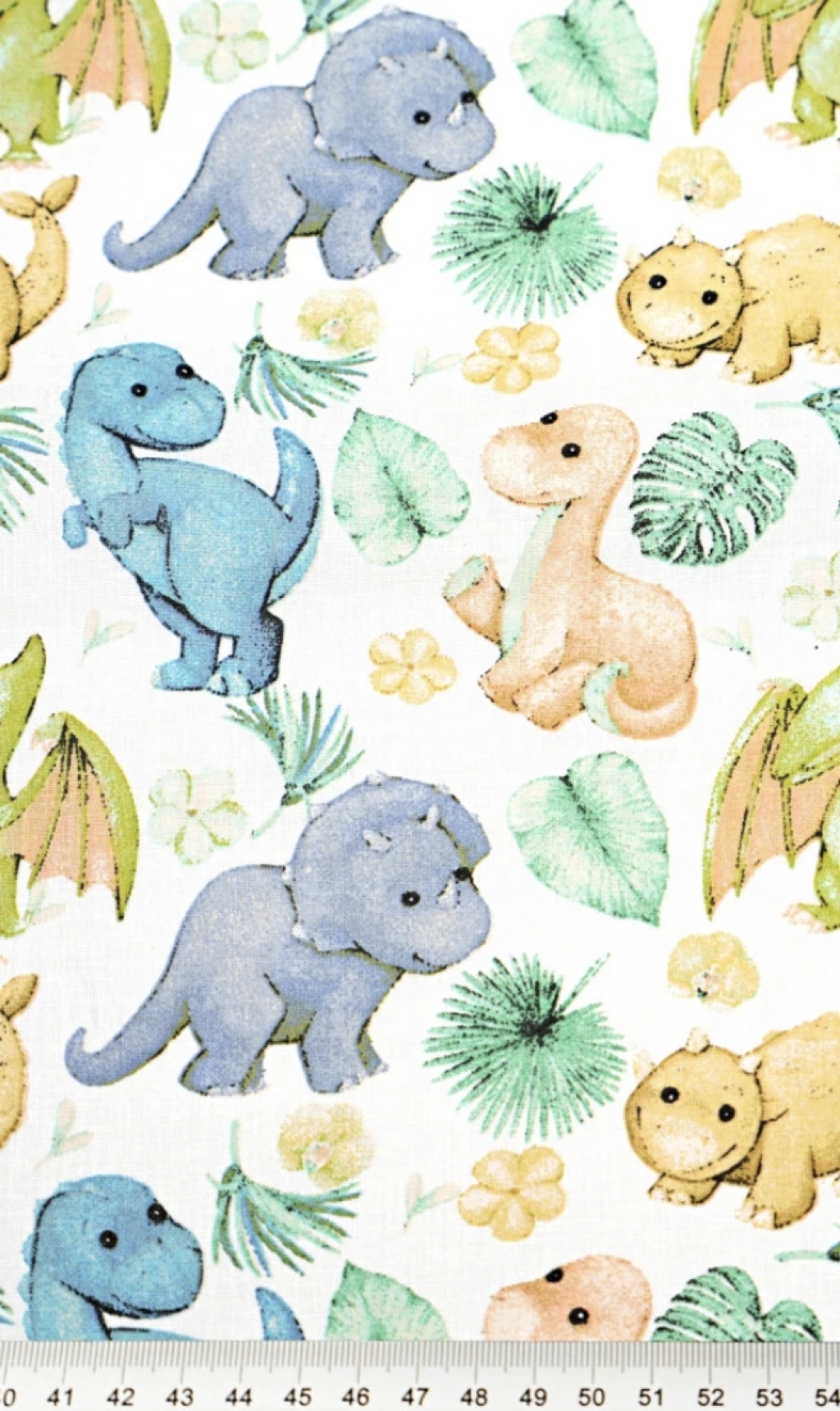 Tissu 100% coton blanc avec des dinosaures multicolores