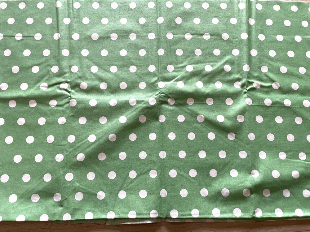 Tissu enduit vert amande avec des pois blancs de 1,6mm de diamètre