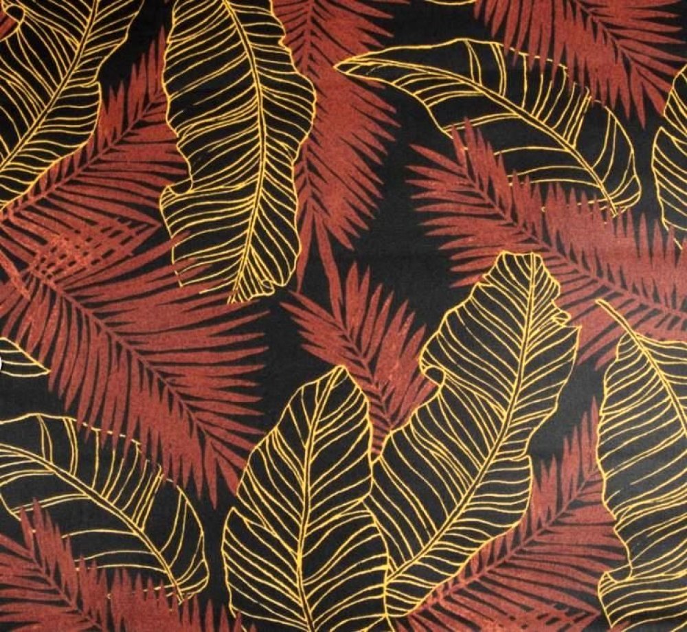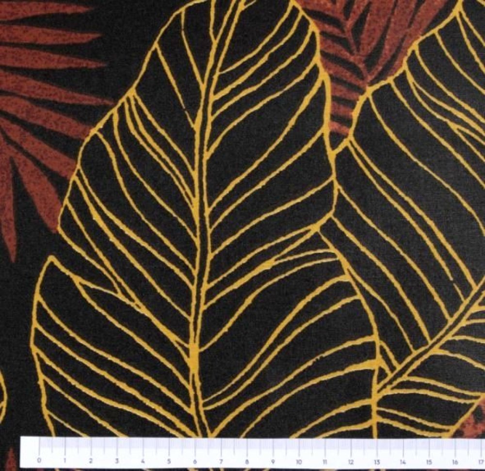 Tissu 100% coton enduit imprimé de feuillages marron, noir et doré